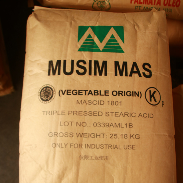 硬酯酸具有18个碳原子链的饱和脂肪酸,外观呈白色略带光泽的蜡状小片结晶体,不溶于水,目前市场上流通的商品硬脂酸一般为十六酸和十八酸的混合物,一般含量56-60%和34-40%之间,各个厂家会根据十八酸的含量不同又会具体分为不同型号的硬脂酸。