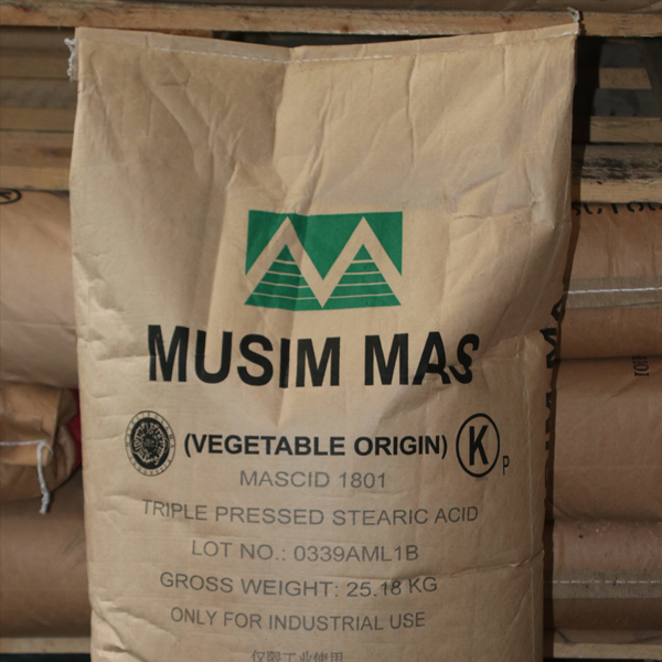 硬酯酸具有18个碳原子链的饱和脂肪酸,外观呈白色略带光泽的蜡状小片结晶体,不溶于水,目前市场上流通的商品硬脂酸一般为十六酸和十八酸的混合物,一般含量56-60%和34-40%之间,各个厂家会根据十八酸的含量不同又会具体分为不同型号的硬脂酸。